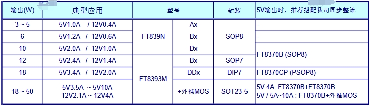 FT8393M系列:提供5V3.4A和12V2.0A的輸出,推薦搭配FT8370CP進(jìn)行同步整流。