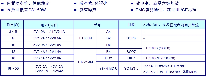FT839xx/FT8393xx系列芯片是專為滿足DoE(美國能源部)和CoC(歐洲協(xié)調(diào)委員會)六級能效標準而設(shè)計的AC-DC恒壓恒流芯片。該系列芯片內(nèi)置功率管,具備性能穩(wěn)定、成本低、體積小、效率高等特點,能夠覆蓋3W~50W的瓦數(shù)范圍,廣泛適用于各種電子設(shè)備的充電器和適配器設(shè)計。