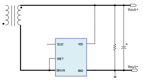• VDET(管腳2):用于檢測輸出電壓,當輸出電壓低于設定值時,發送信號提醒原邊控制器。