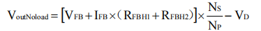 在三繞組應(yīng)用中,輕載輸出電壓VoutNoload的計算公式為: