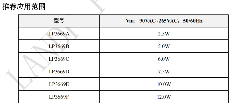 LP3669系列提供了從2.5W到12.0W的多種輸出功率選擇,能夠滿足從低功耗到高功耗設備的不同需求。這種多樣化的功率選擇使得工程師可以根據(jù)具體應用場景選擇最適合的型號。