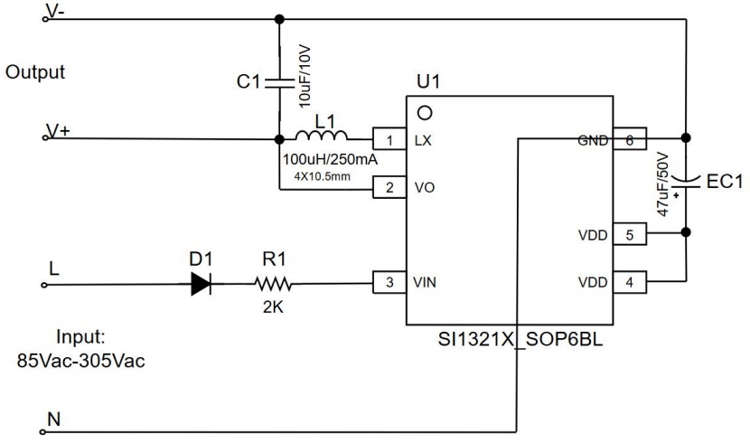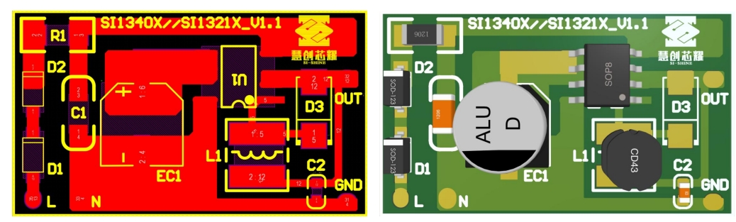 SI13213L/H和SI13215L/H是慧創(chuàng)芯耀(Si-Shine)推出的非隔離降壓恒壓芯片,專為智能家居等應(yīng)用場(chǎng)景設(shè)計(jì)。SI13213L/H提供3.3V的輸出電壓,而SI13215L/H則提供5V的輸出電壓。兩款芯片均具有寬輸入電壓范圍(85-305VAC)、低輸出紋波、低待機(jī)功耗(小于50mW)等特點(diǎn),并且無需π型濾波或安規(guī)電容即可通過EMI測(cè)試,大大簡化了外圍電路設(shè)計(jì)。