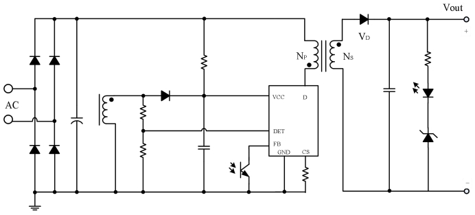 DET 腳:用于檢測輸出電壓和退磁點,實現恒功率和恒流控制。