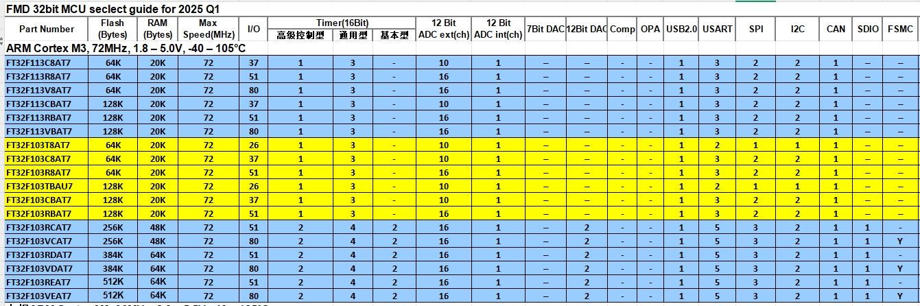 FT32A103RCAT3:256KB Flash+48KB RAM,51個(gè)GPIO,LQFP64封裝,雙CAN通道+USB OTG,專為車載網(wǎng)關(guān)設(shè)計(jì)。