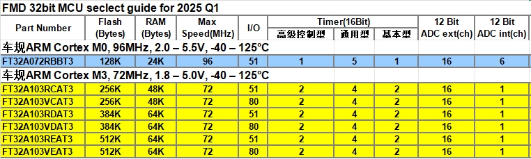 | 車規(guī)級 | FT32A103VCAT3 | 100Pin LQFP,車載中控標(biāo)配 |