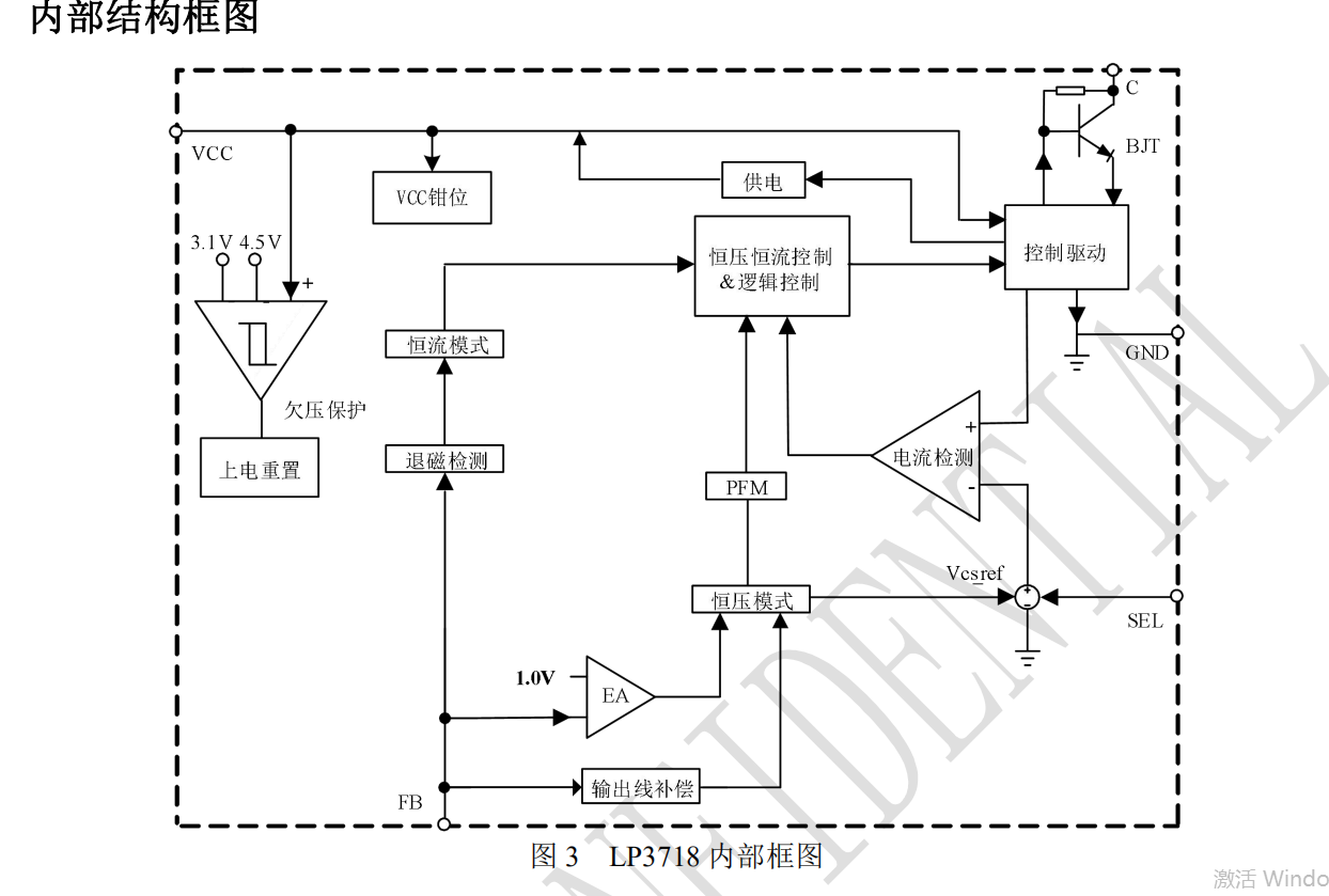 LP3718 是一款高度集成的隔離型適配器和充電器的自供電PSR控制芯片,外圍設計極其簡單。 LP3718 通過外置電阻,可調原邊峰值電流,再 通過變壓器原副邊匝比來設置輸出恒流點;通過設 定 FB 上偏電阻和下偏電阻來設置輸出恒壓點。 為了實現系統成本的致簡化,LP3718 內置啟 動電路,外圍不需要啟動電阻;采用自供電的方式 來取消輔助繞組 VCC 供電二極管。 為了實現更好的輸出電壓調整率,LP3718 內置 輸出線纜補償功能,可以通過設定 FB 外置上偏電 阻的值來調節輸出線纜補償值。 LP3718 集成了多種的保護功能,包括 VCC 鉗 位/欠壓保護,FB 腳上電阻開路保護,輸出短路保 護,輸出過壓保護以及過溫保護等保護功能。 LP3718 采用 SOP8L、ASOP6 以及 DIP7 封裝