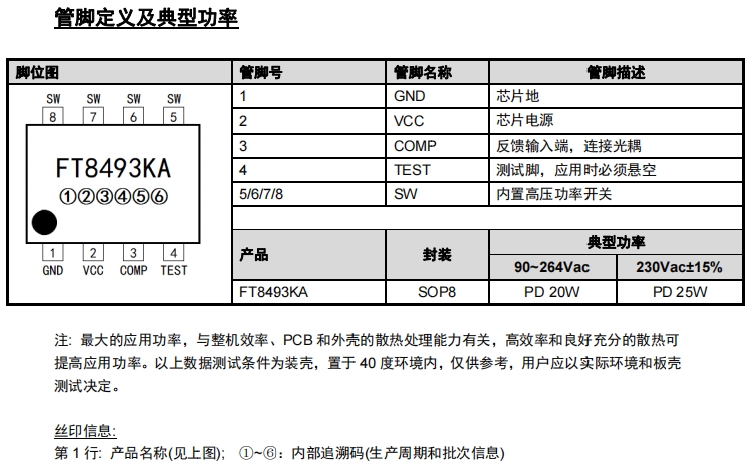 FT8493KA 采用 SOP8 封裝,具有以下管腳定義: