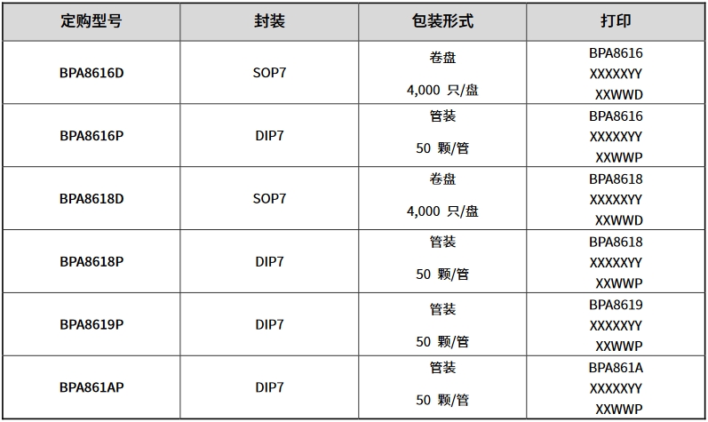 BPA861x系列包含多個型號,每個型號針對不同的功率和應(yīng)用需求進(jìn)行了優(yōu)化。以下是該系列中的主要型號: