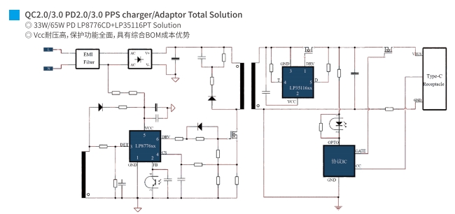 65W PD快充方案以其高效率、高兼容性和高安全性,成為現(xiàn)代電子設(shè)備充電技術(shù)的重要發(fā)展方向。LP8776CD+LP35116PT方案以其成本優(yōu)勢和全面保護功能,適合對成本敏感的市場;而LP88G24+LP35118X方案則以其高效率和小體積,滿足了對性能和便攜性有更高要求的用戶。隨著技術(shù)的不斷進步,未來快充方案將更加完善,為用戶帶來更加便捷和安全的充電體驗。