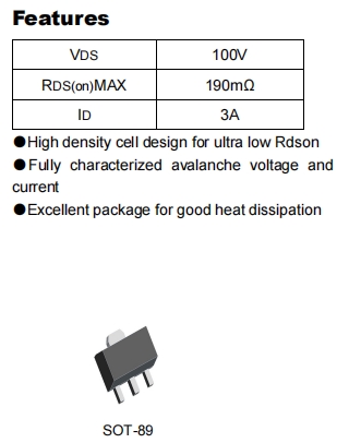 漏源電壓(VDS):最大值為100V。這是MOSFET在正常工作時能夠承受的最大電壓,超過這個值可能會導致器件損壞。